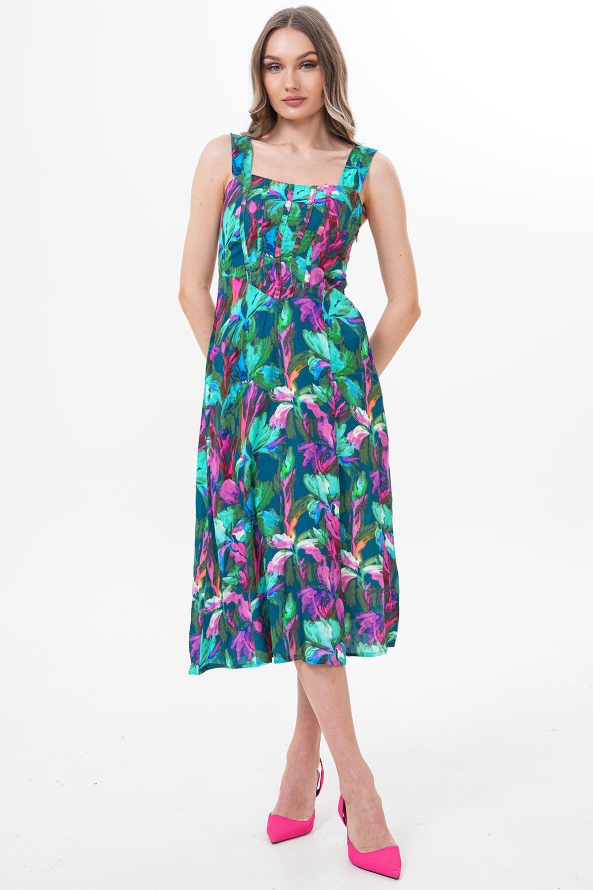 Balenli Kalın Askılı Elbise (4Y-ELB0149-YŞL)
