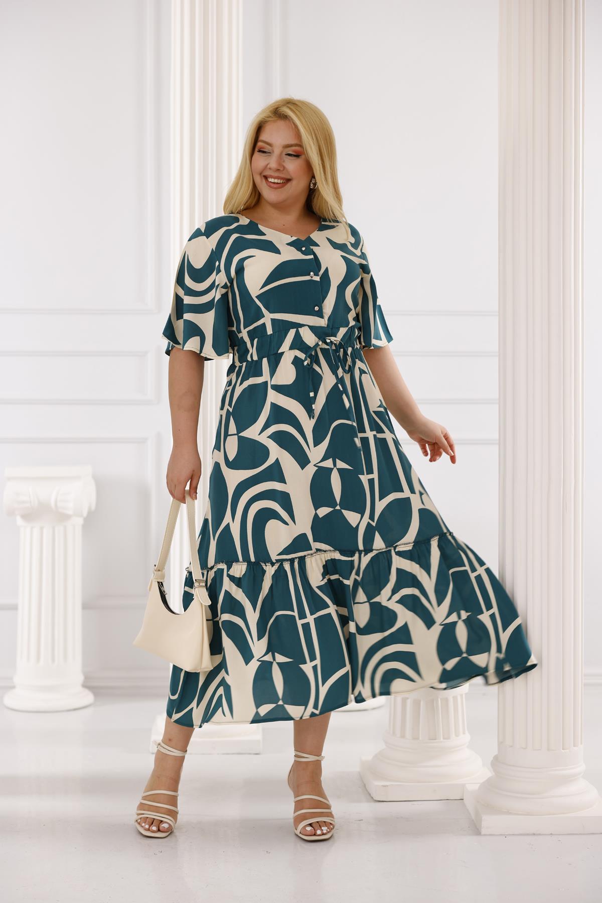 Büyük Beden Beli Lastikli Eteği Pileli Elbise (5Y-ELB00066-ZMRT)