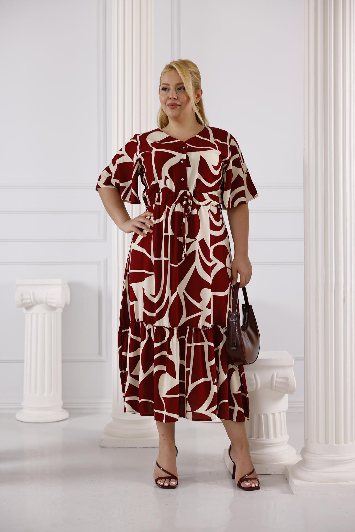 Büyük Beden Beli Lastikli Eteği Pileli Elbise (5Y-ELB00066-BRD)