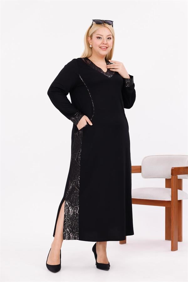 Büyük Beden Cepli Gümüş Detaylı Elbise (6K-ELB0003-SYH)