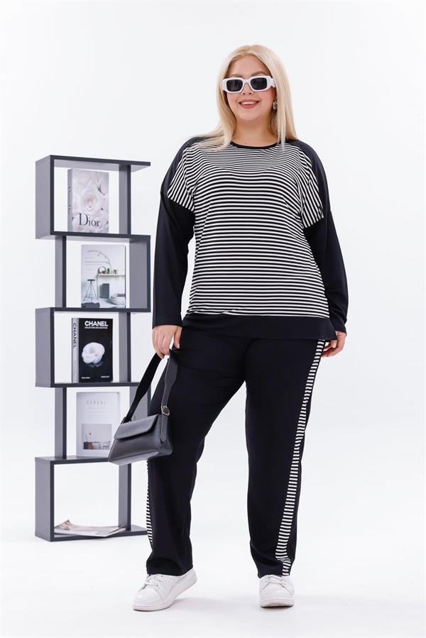 Büyük Beden Çizgili Pamuklu Likralı Takım (6K-TKM0005-SYH)