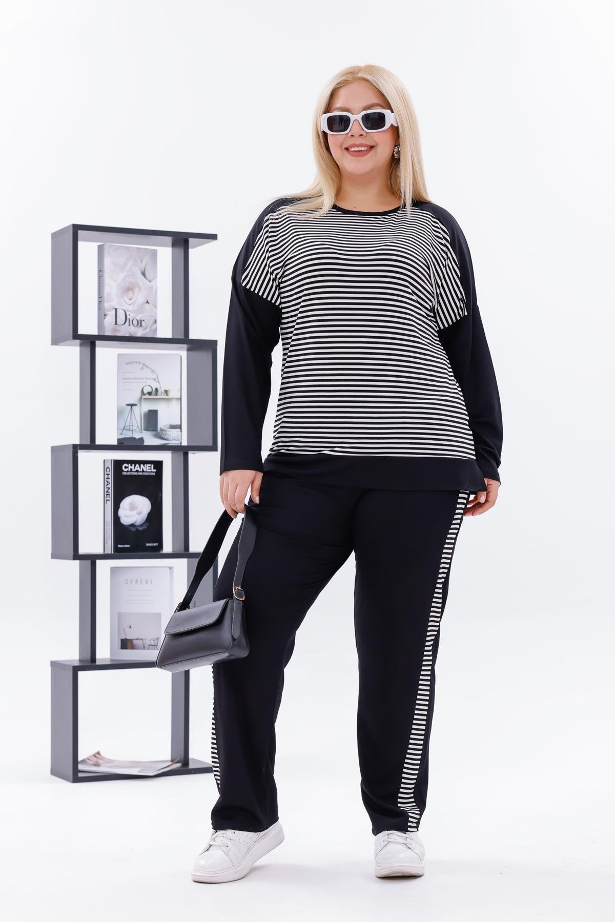 Büyük Beden Çizgili Pamuklu Likralı Takım