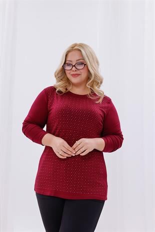 Büyük Beden Gold Taş Baskılı Bluz (6K-BLZ0008-BRD)