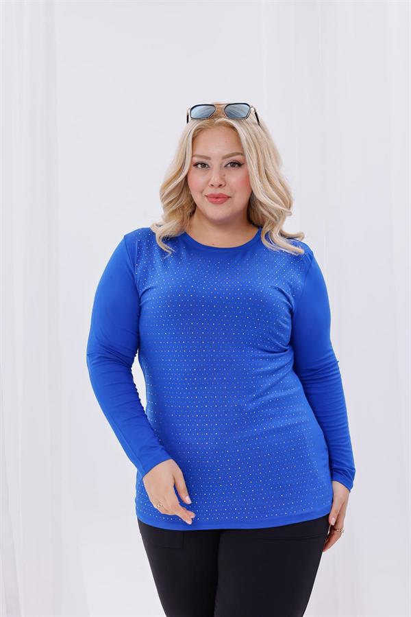 Büyük Beden Gold Taş Baskılı Bluz (6K-BLZ0008-SAKS)
