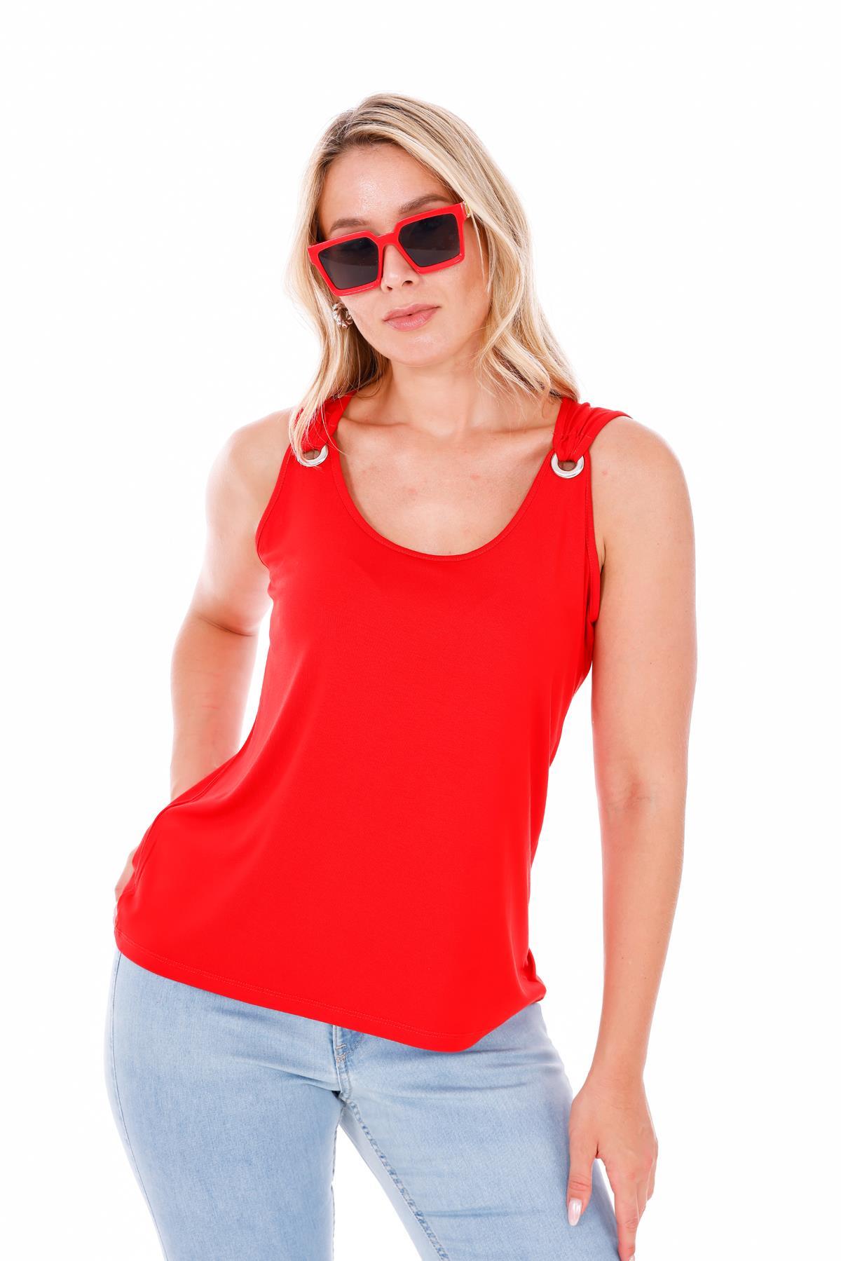 Büyük Beden Metal Aksesuarlı Kalın Askılı Atlet (5Y-BLZ00081-KRMZ)