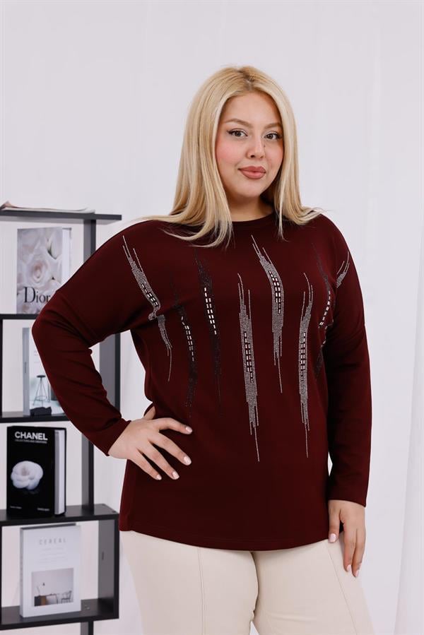Büyük Beden Modal Kumaş Yarasa Kol Bluz (6K-BLZ00013-BRD)