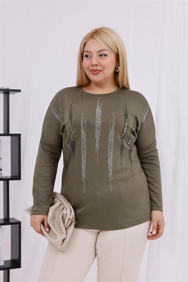 Büyük Beden Modal Kumaş Yarasa Kol Bluz (6K-BLZ00013-HAKİ)