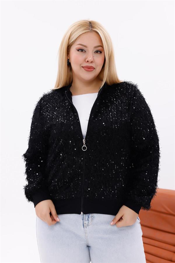 Büyük Beden Sakallı Pullu Fermuarlı Hırka (6K-HRK0001-SYH)