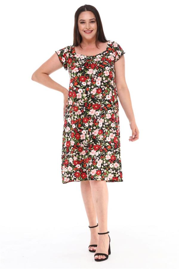 Büyük Beden Sırttan Bağlamalı Likralı Robalı Midi Boy Elbise Siyah (ELB3010Y0008SYH)