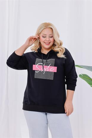 Büyük Beden Taş Detaylı Kapüşonlu Sweatshirt (6K-SWT0004-SYH)