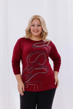 Büyük Beden Taş Işıltılı Bluz (6K-BLZ0009-BRD)