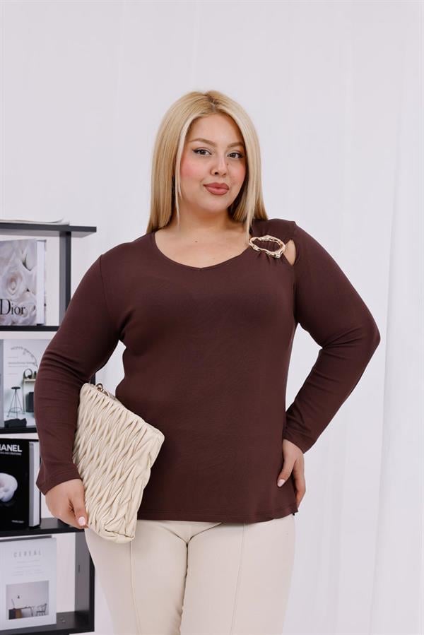 Büyük Beden Toka Detaylı Likralı Çilek Kumaş Bluz (6K-BLZ00016-KHV)