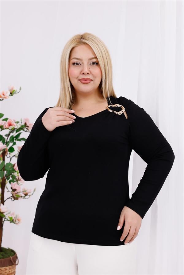 Büyük Beden Toka Detaylı Likralı Çilek Kumaş Bluz (6K-BLZ00016-SYH)