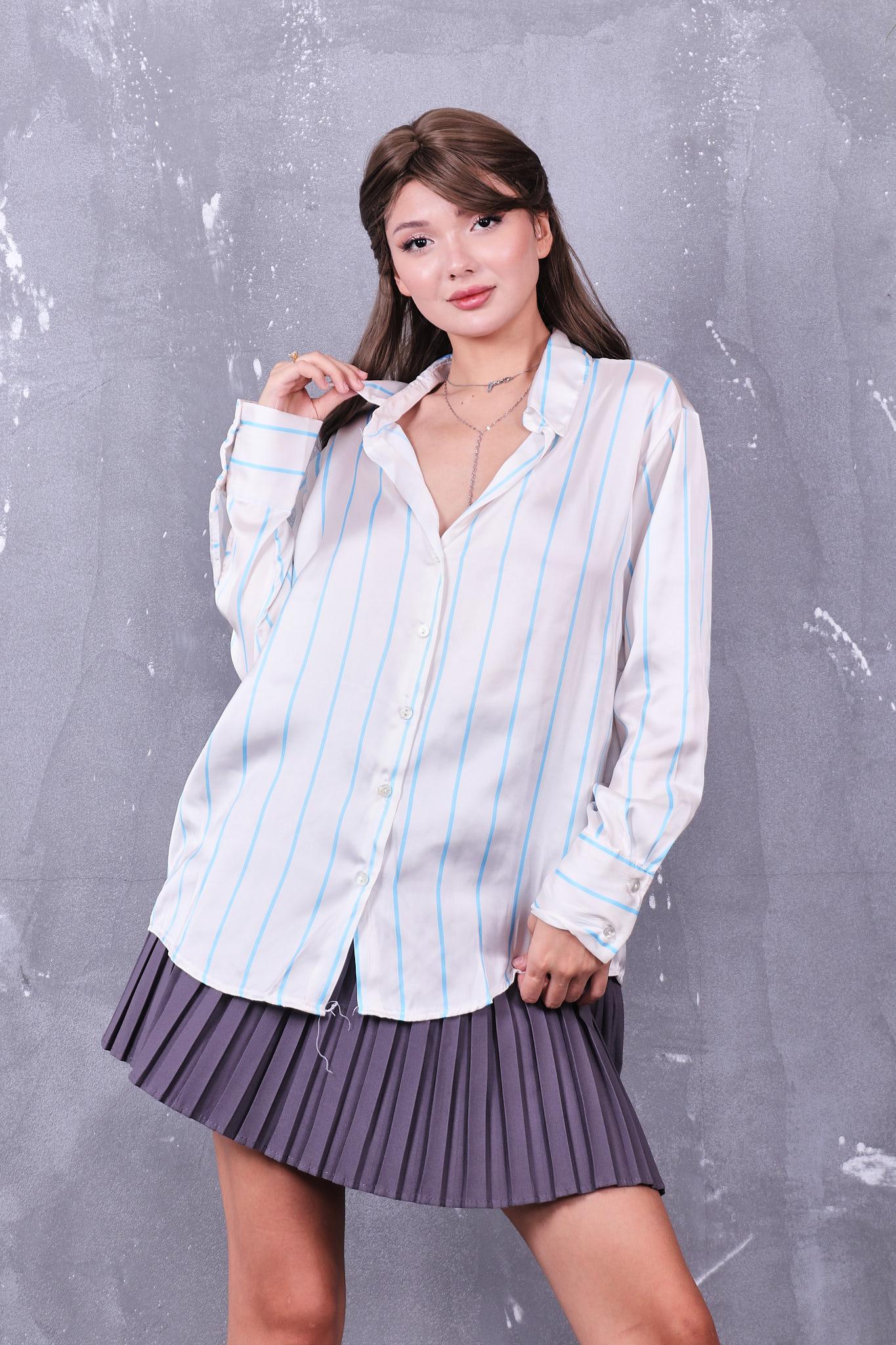 Çizgili Oversize Saten Gömlek (4Y-GML0032-MAVİ)