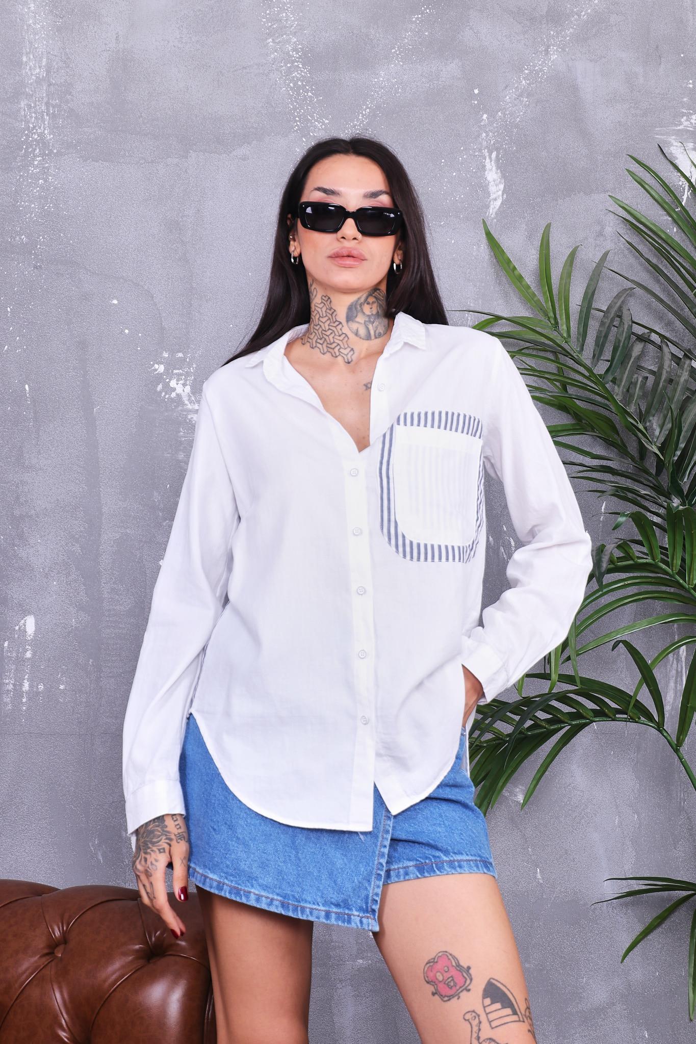 Çizgili Sırtı Detaylı Pamuk Gömlek (4Y-GML007-BYZ)