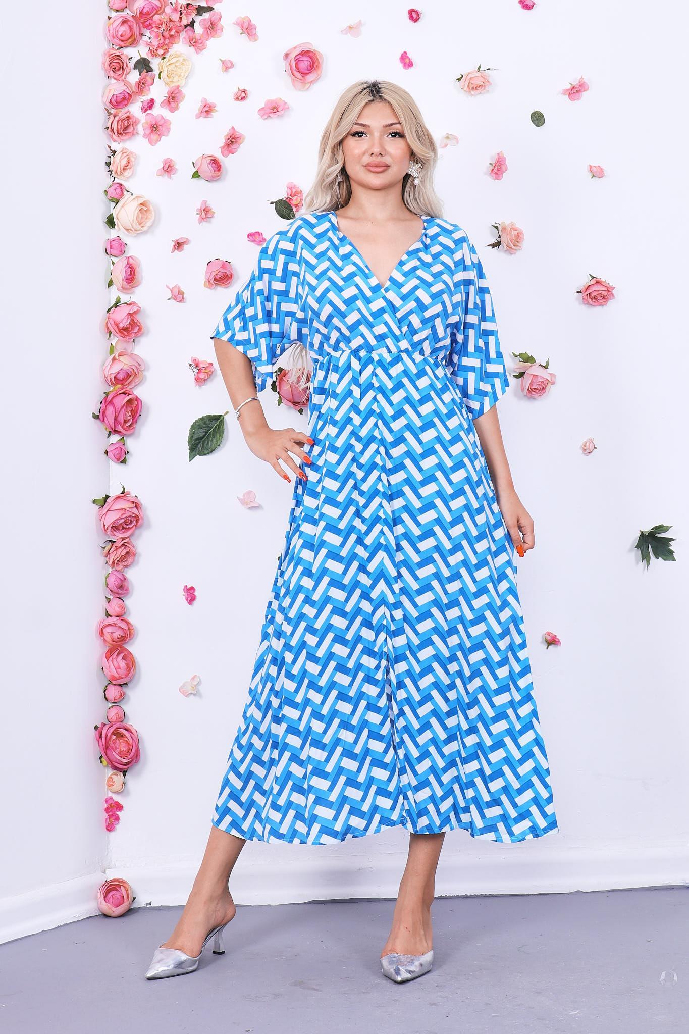 Geometrik Desen Beli Lastikli Elbise (4Y-ELB0145-SAKS)