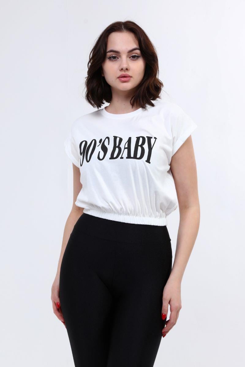 Kadın Beli Lastikli Crop T-Shirt Beyaz (4Y-TST001-BYZ)