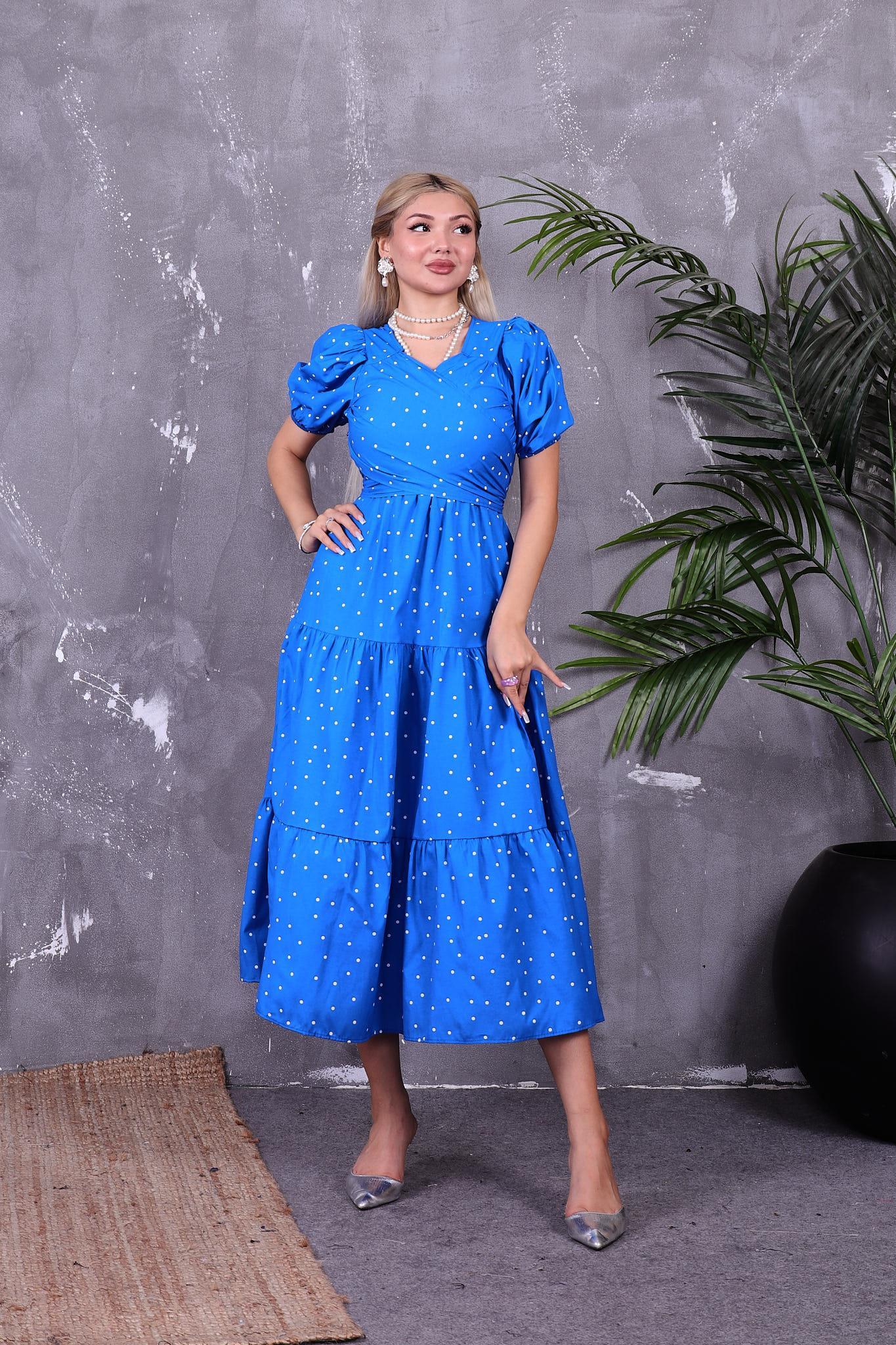 Önden Arkaya Bağlamalı Poplin Elbise (4Y-ELB0121-SAKS)