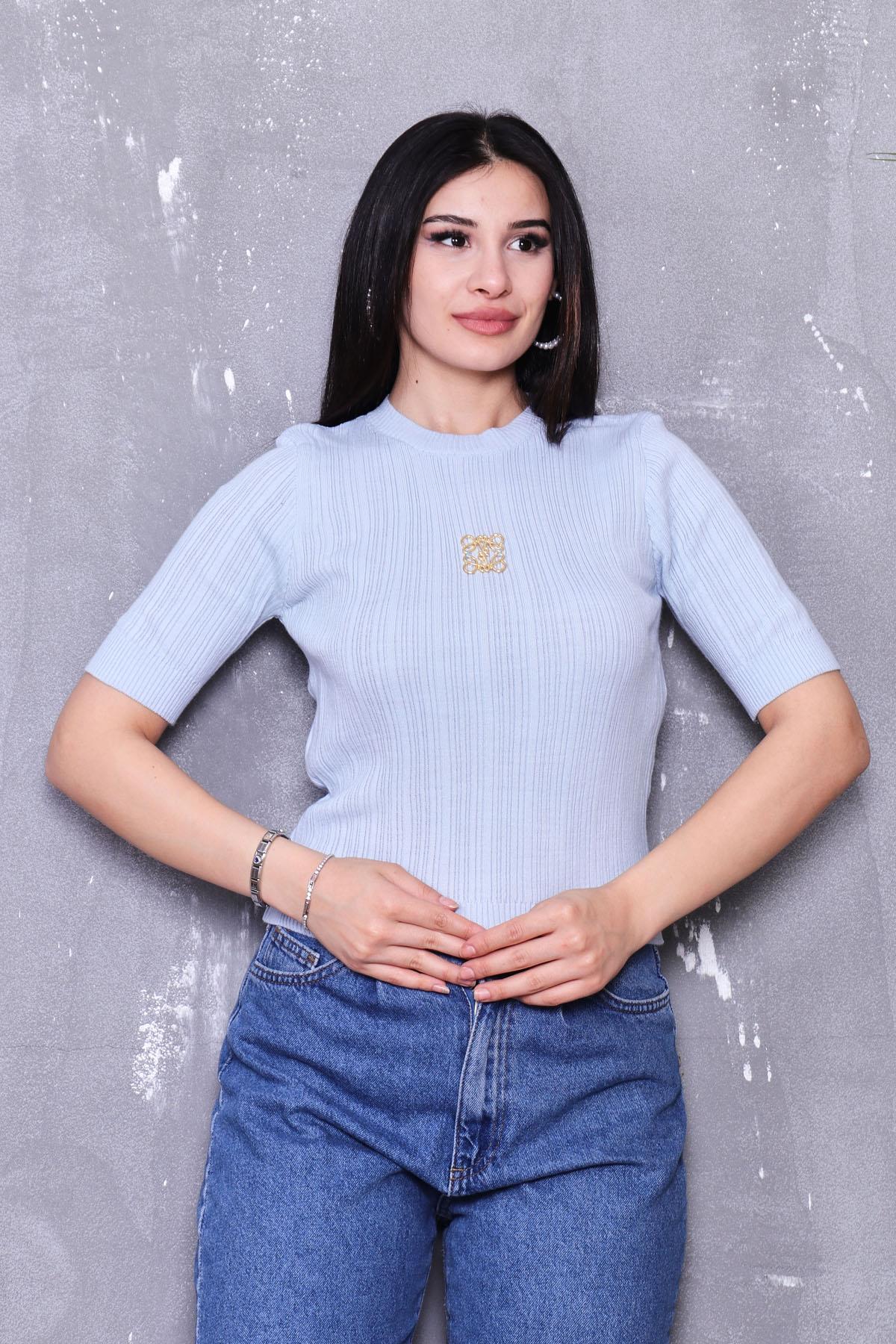 Önü Metal Aksesuarlı Merserize Bluz (4Y-BLZ0032-MVİ)