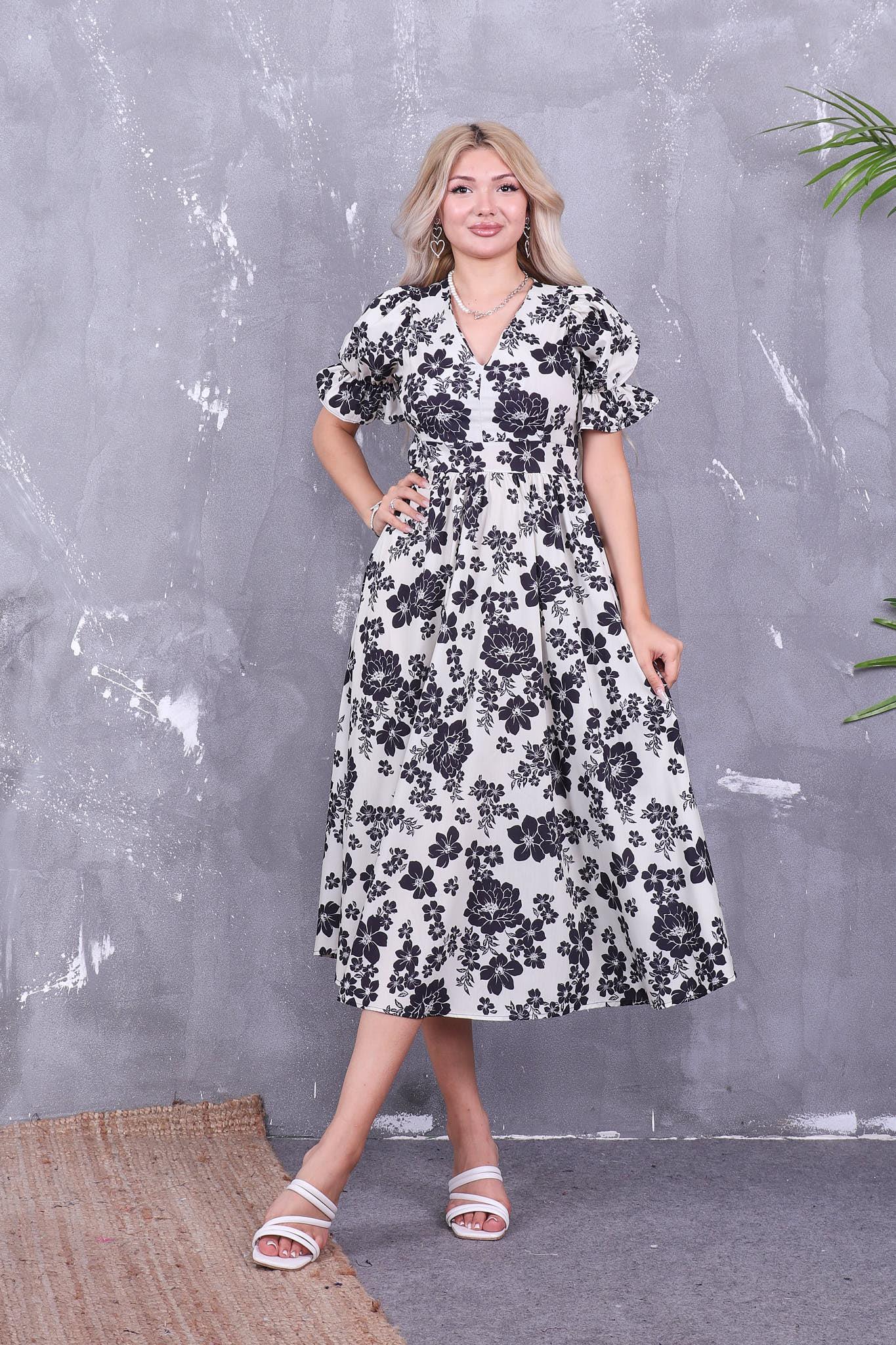 V Yaka Poplin Kumaş Elbise (4Y-ELB0119-SYH)